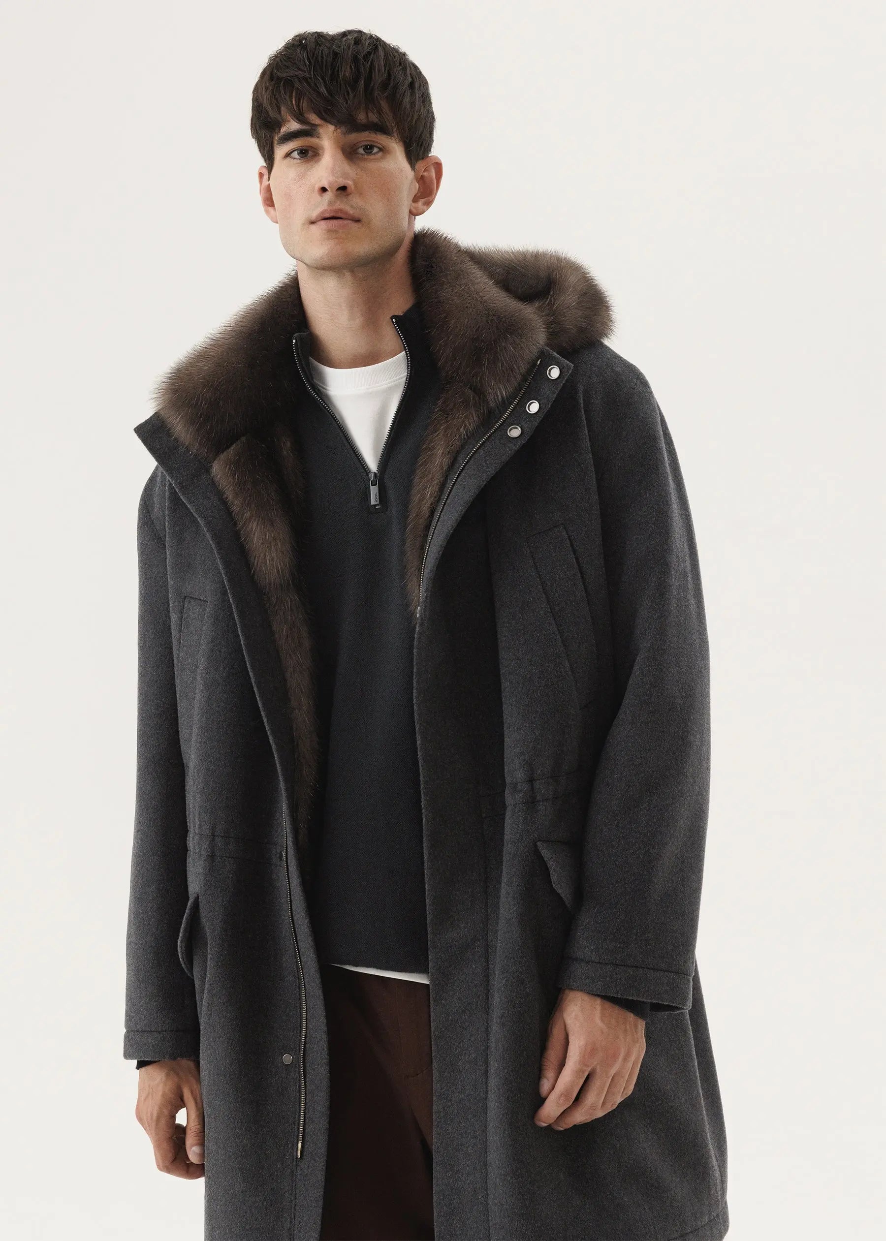 Verlängerter Kaschmir-Parka mit Futter aus Barguzinischem Zobelfell