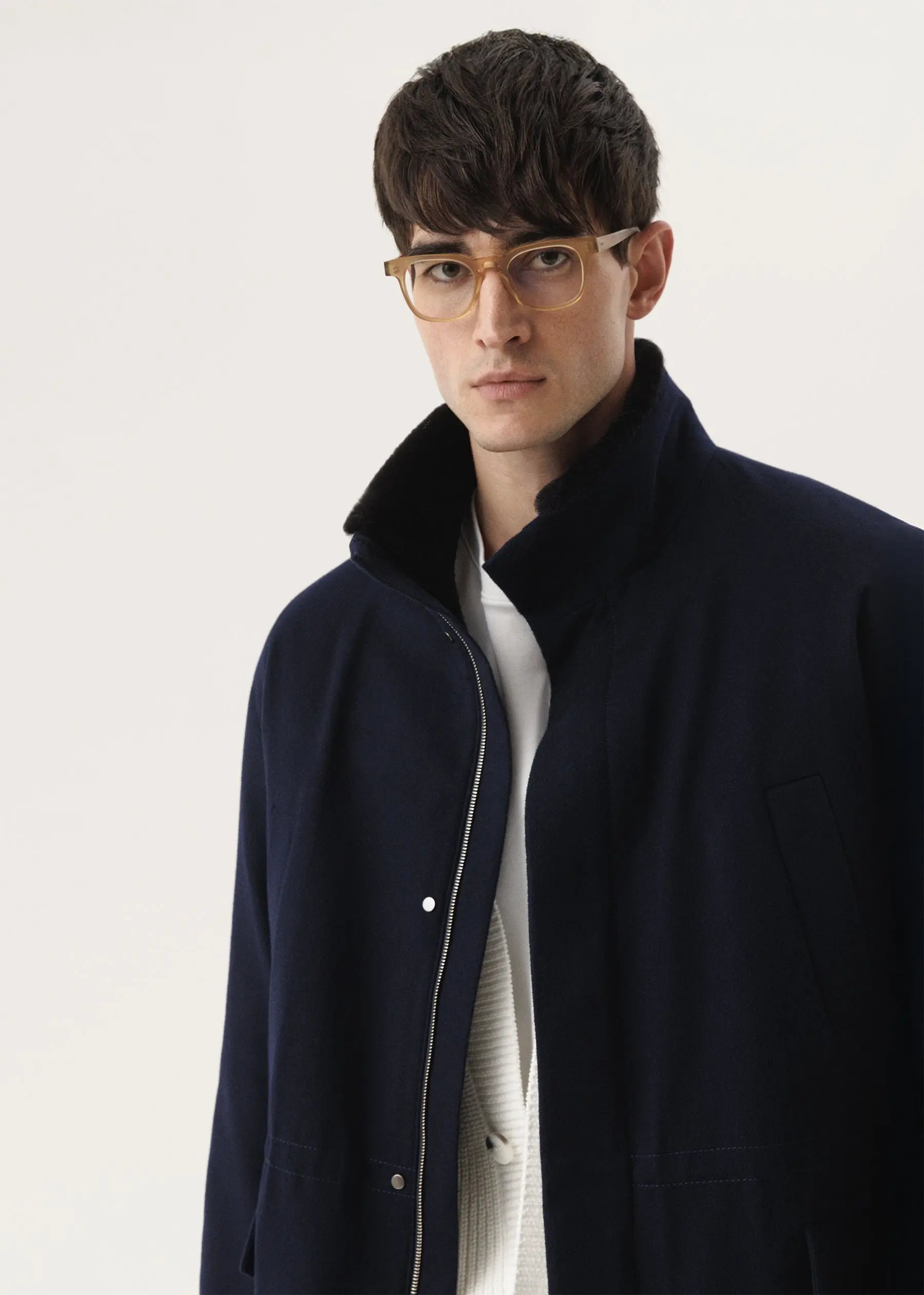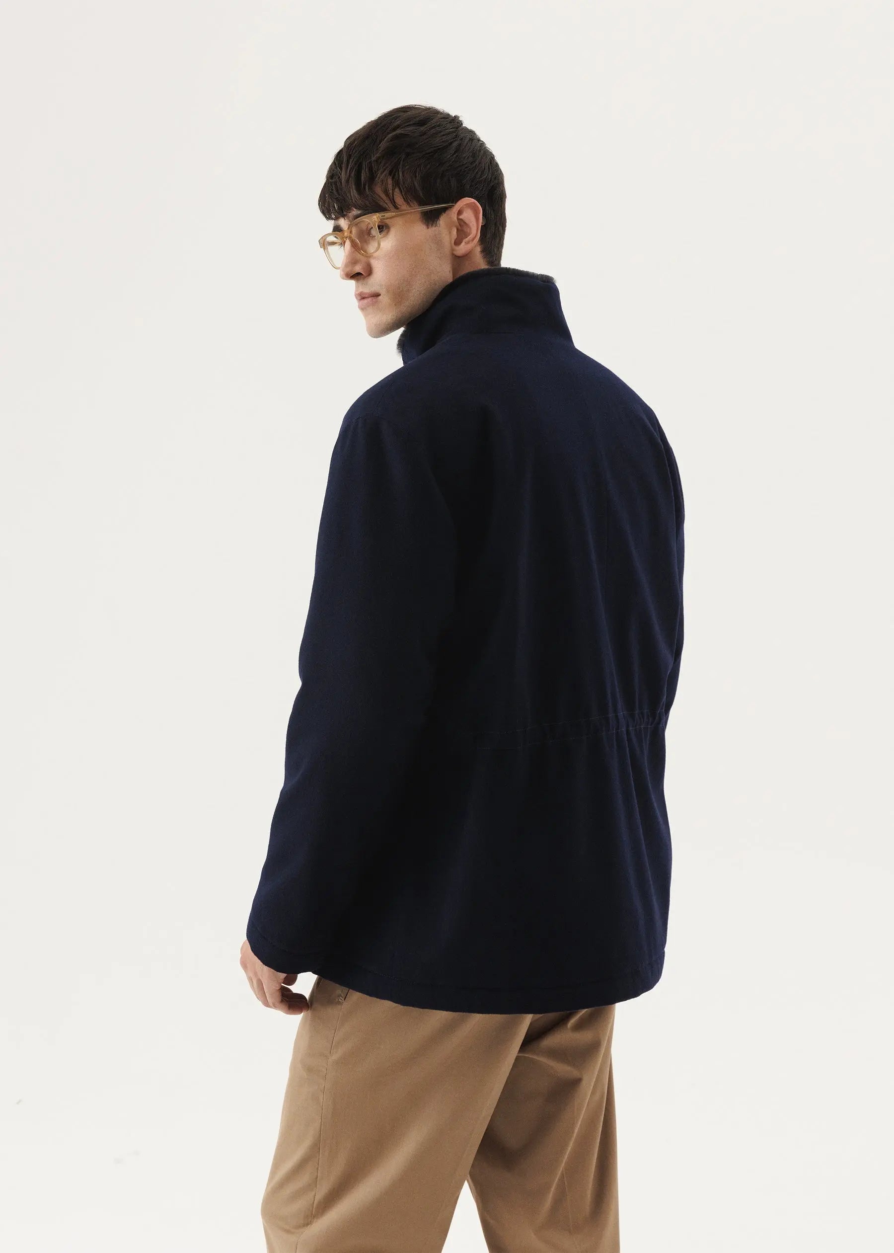 Das Parka-Modell besteht aus dem weichsten italienischen Kaschmir auf der Membran, der den Schutz vor Wind und Kälte verstärkt, mit einem versteckten Tunnelzug an der Taille, zwei Reihen von Schlitz-Taschen und einem praktischen Reißverschluss und Knopfverschluss ausgestattet.