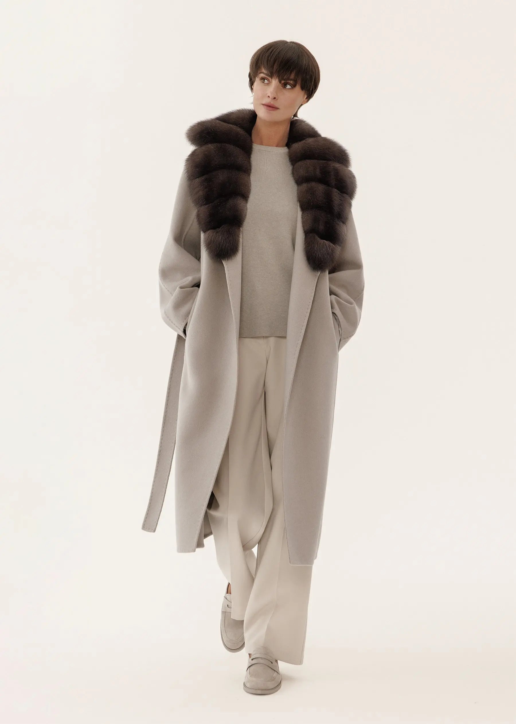 Gerade geschnittener Mantel mit einem klassischen, englischen Kragen aus Barguzin-Zobel.