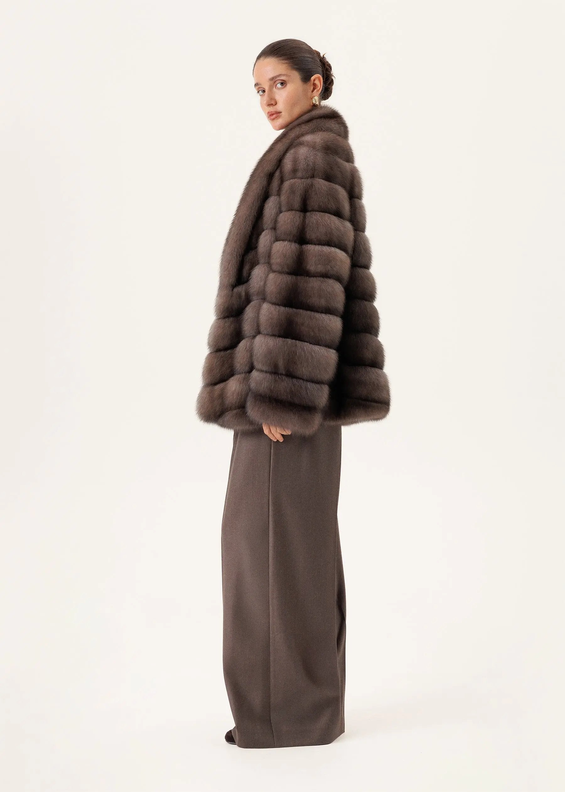 Verkürzter Pelzmantel aus Zobel mit durchgehendem Schalkragen und durchgehenden Manschetten
