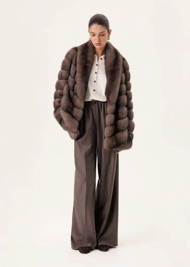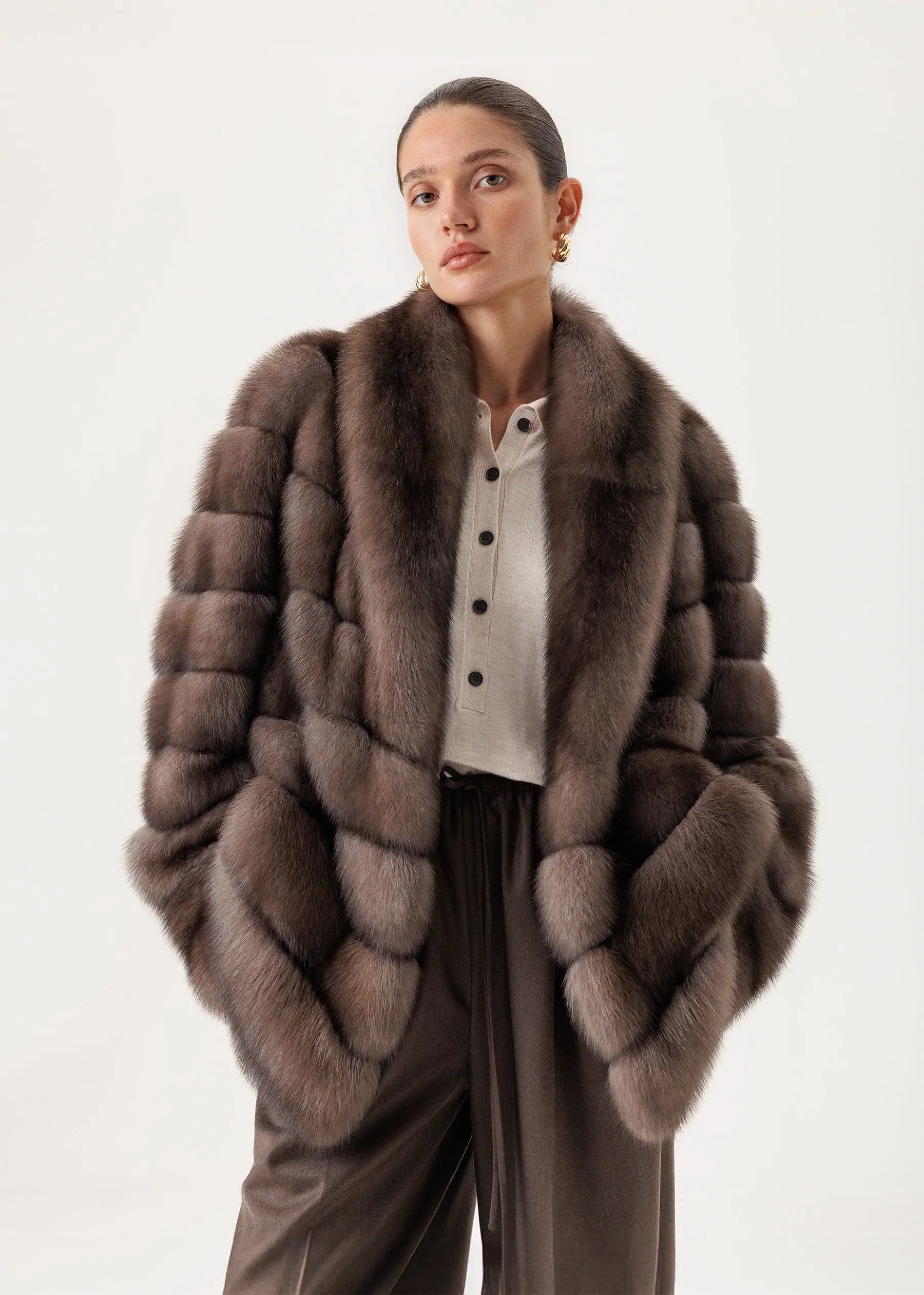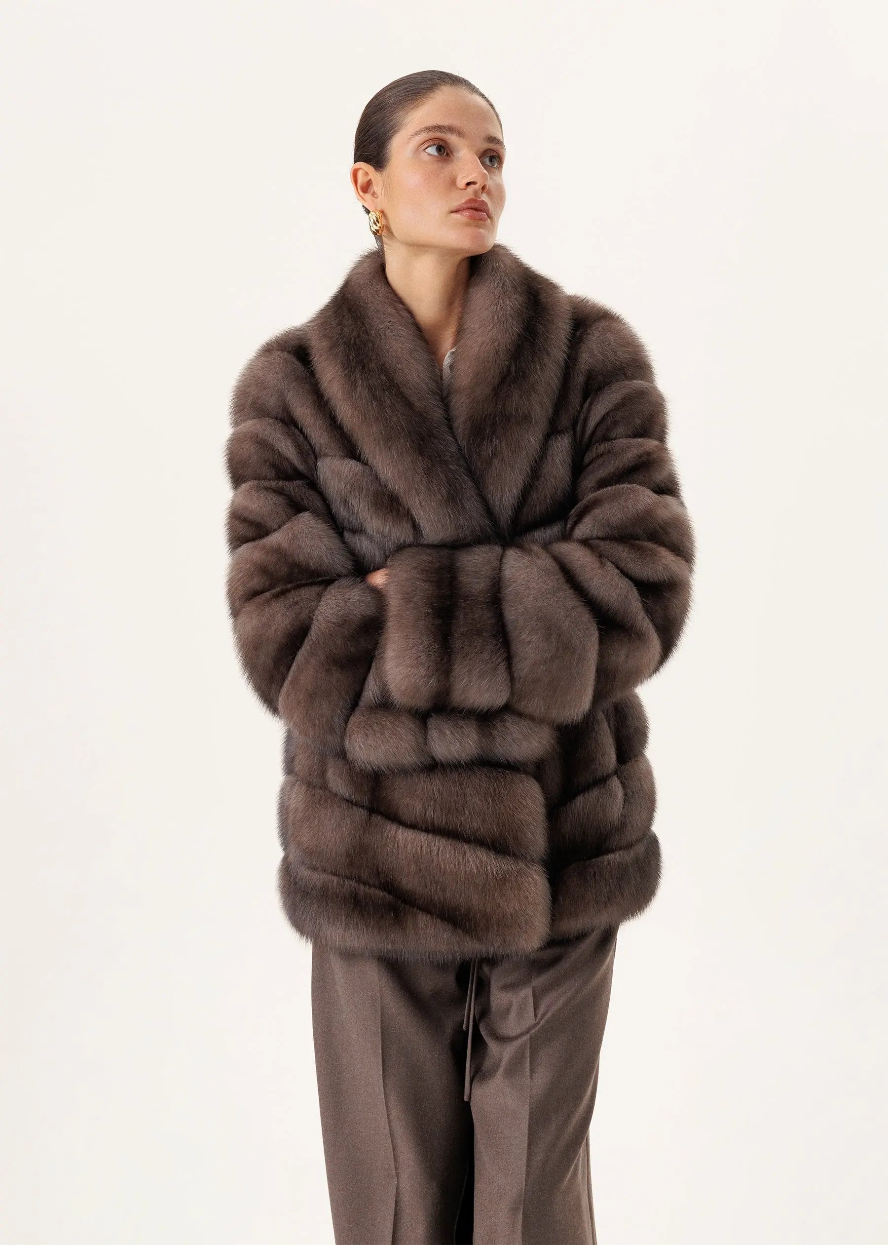 Ein verkürzter Pelzmantel aus Zobel mit diagonal angeordneten Fellen verschönert die Wintertage und verleiht Ihrer Garderobe Eleganz.