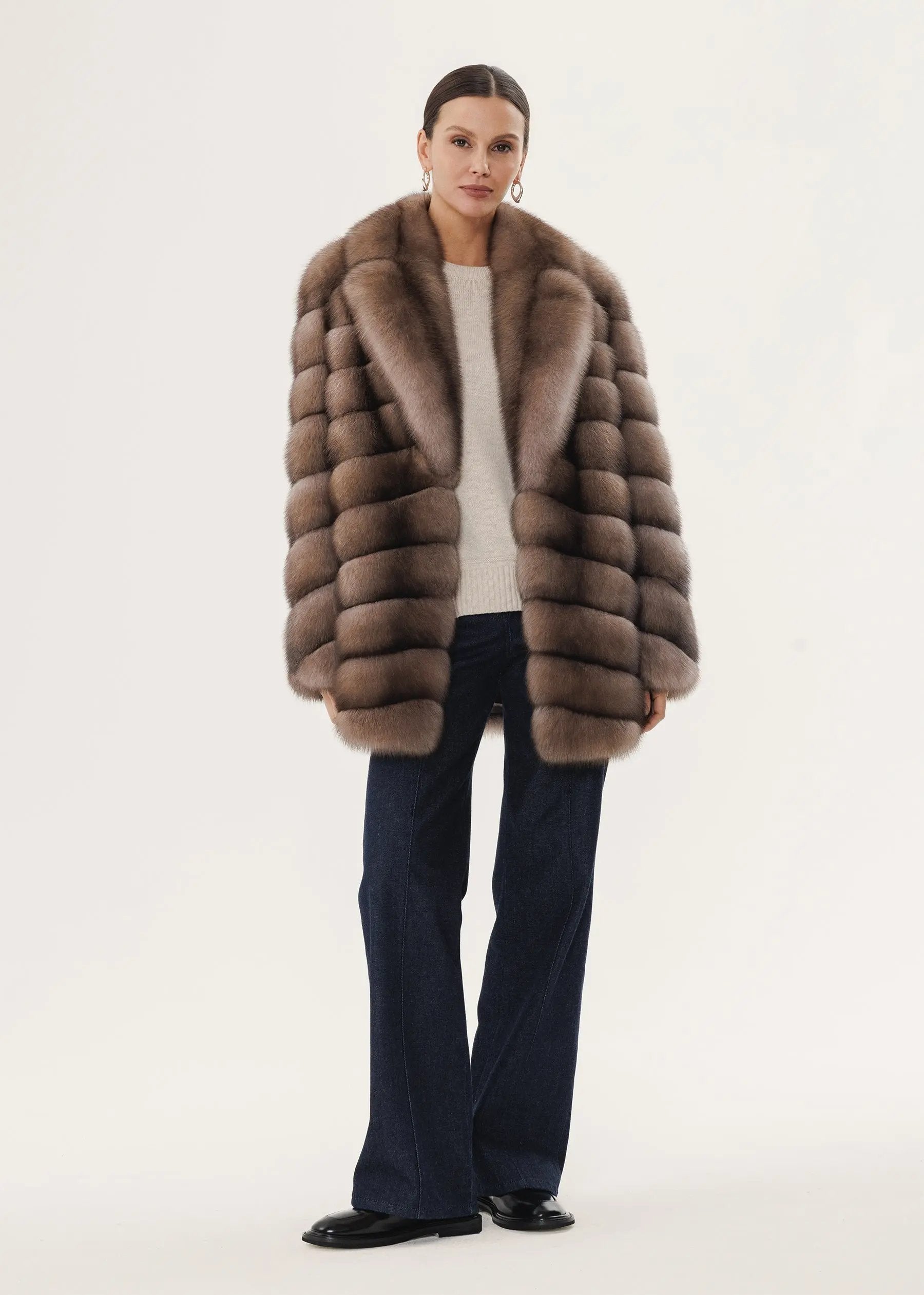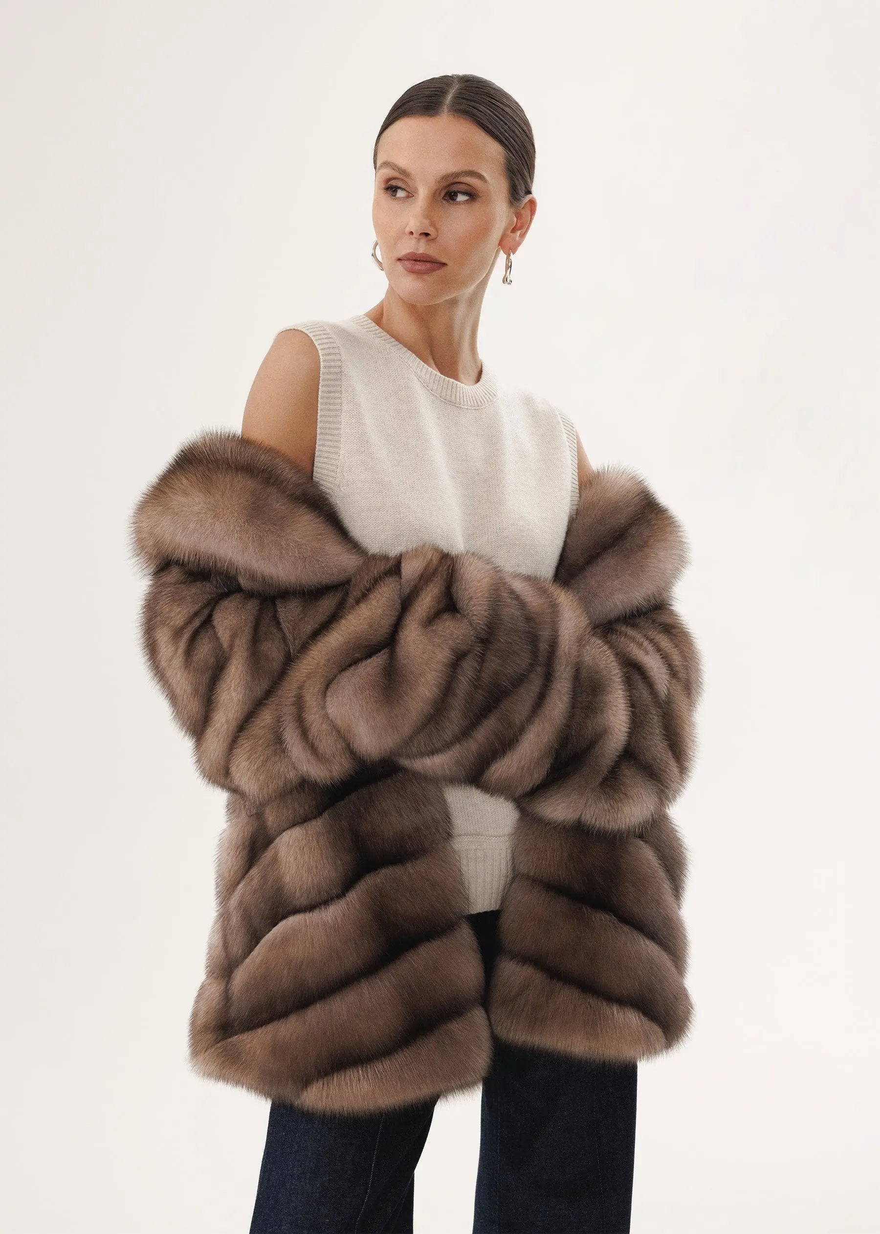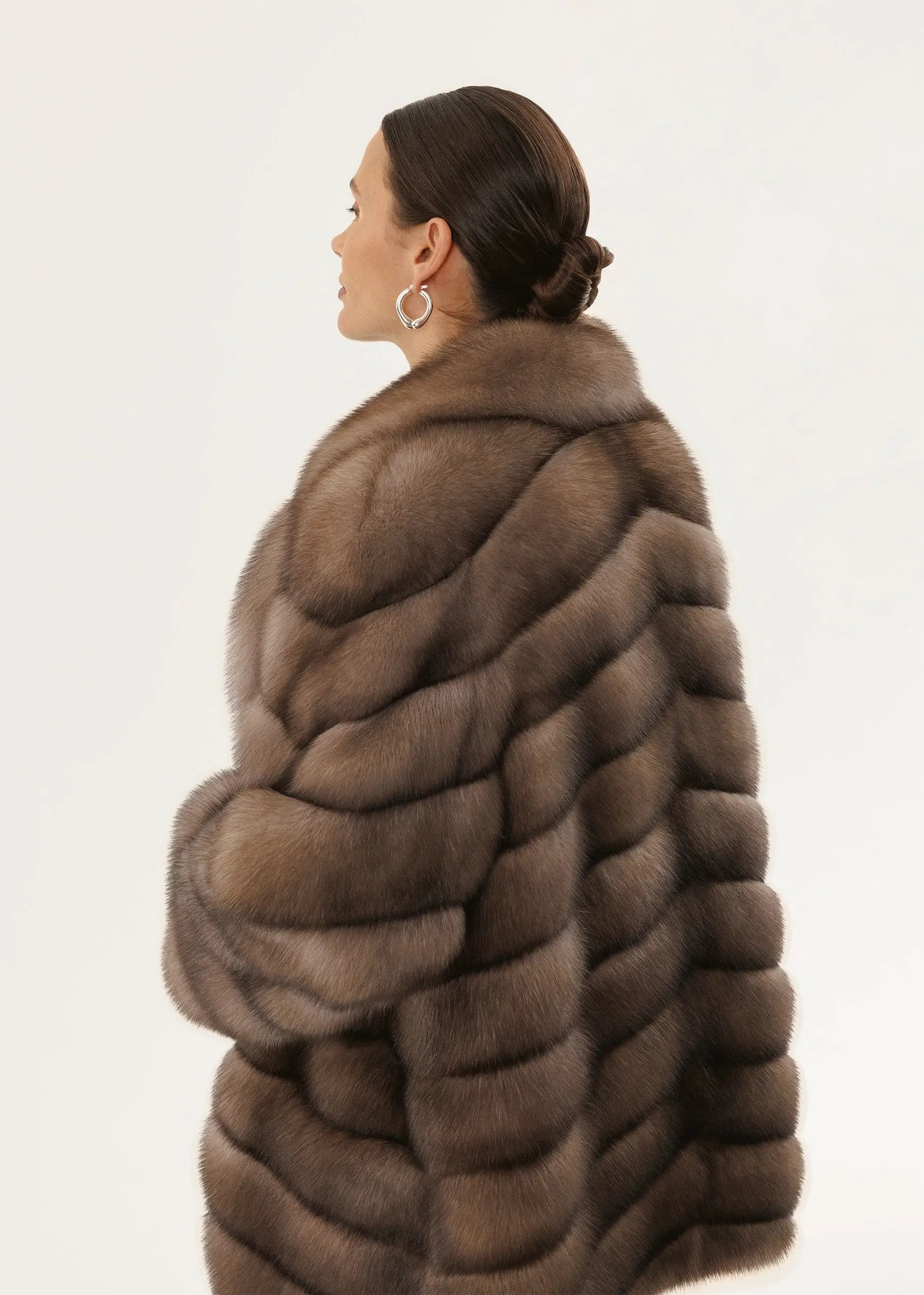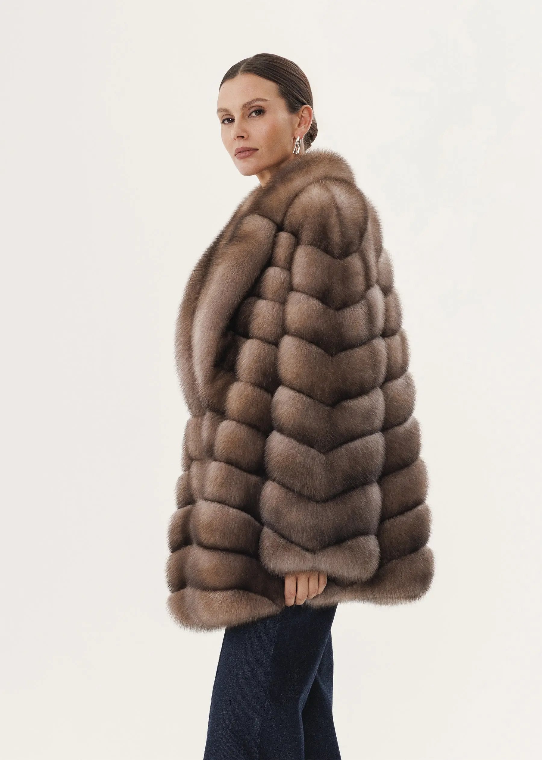 Sable-Pelzmantel mit Ärmeln in Chevron-Wave-Technik