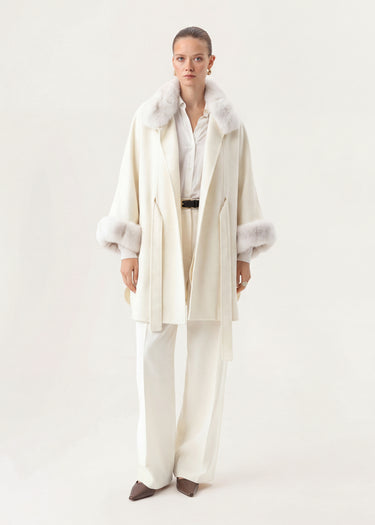 Cashmere cape with real fur for women