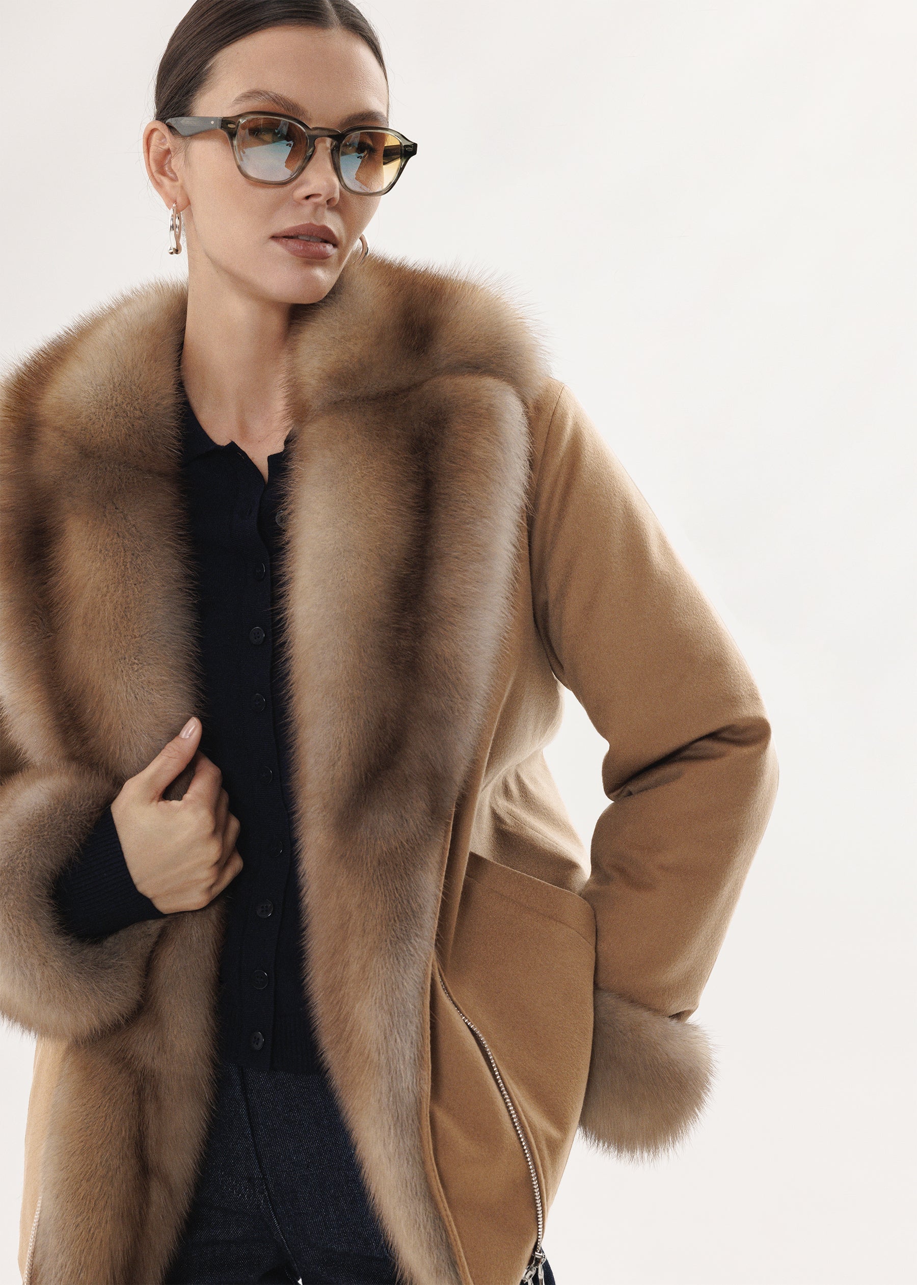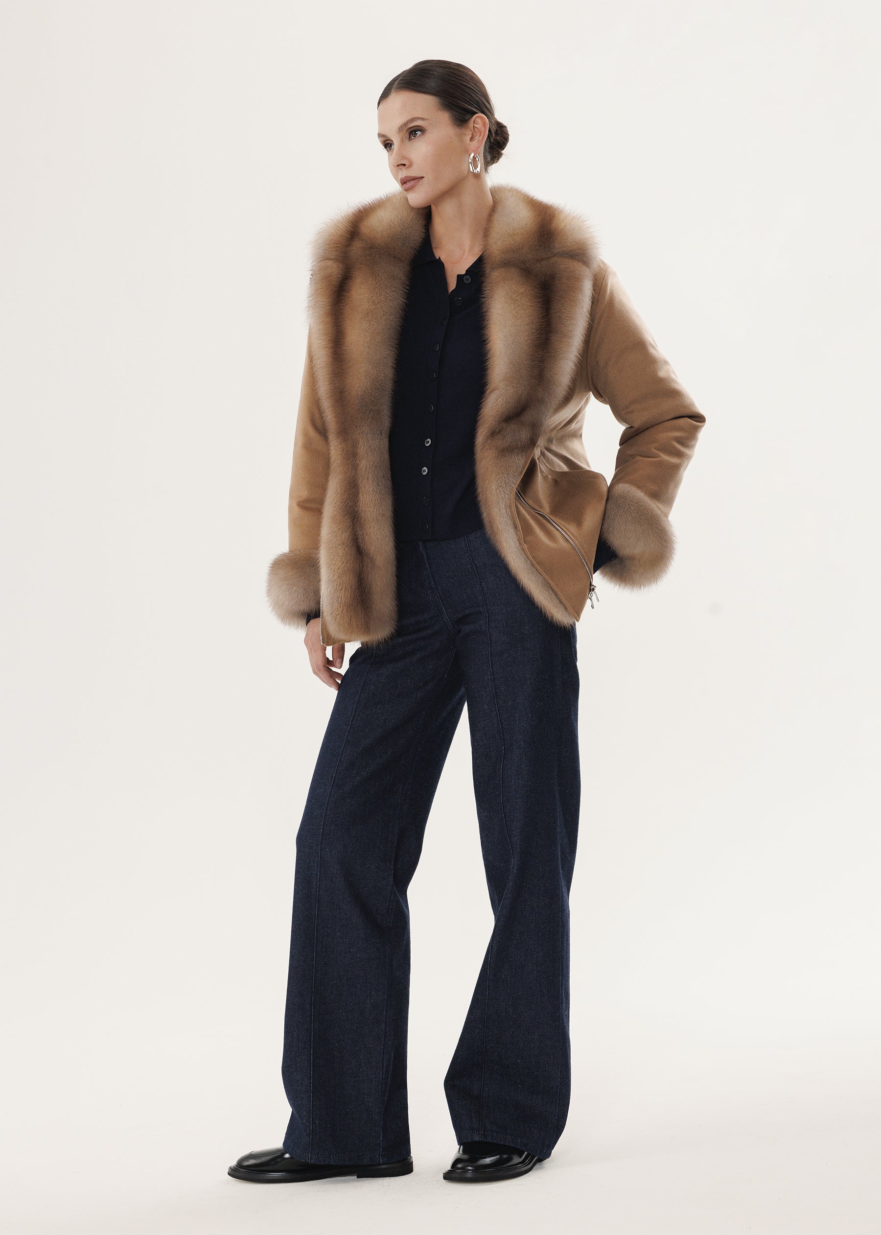 Kaschmirjacke mit Marderfellkragen