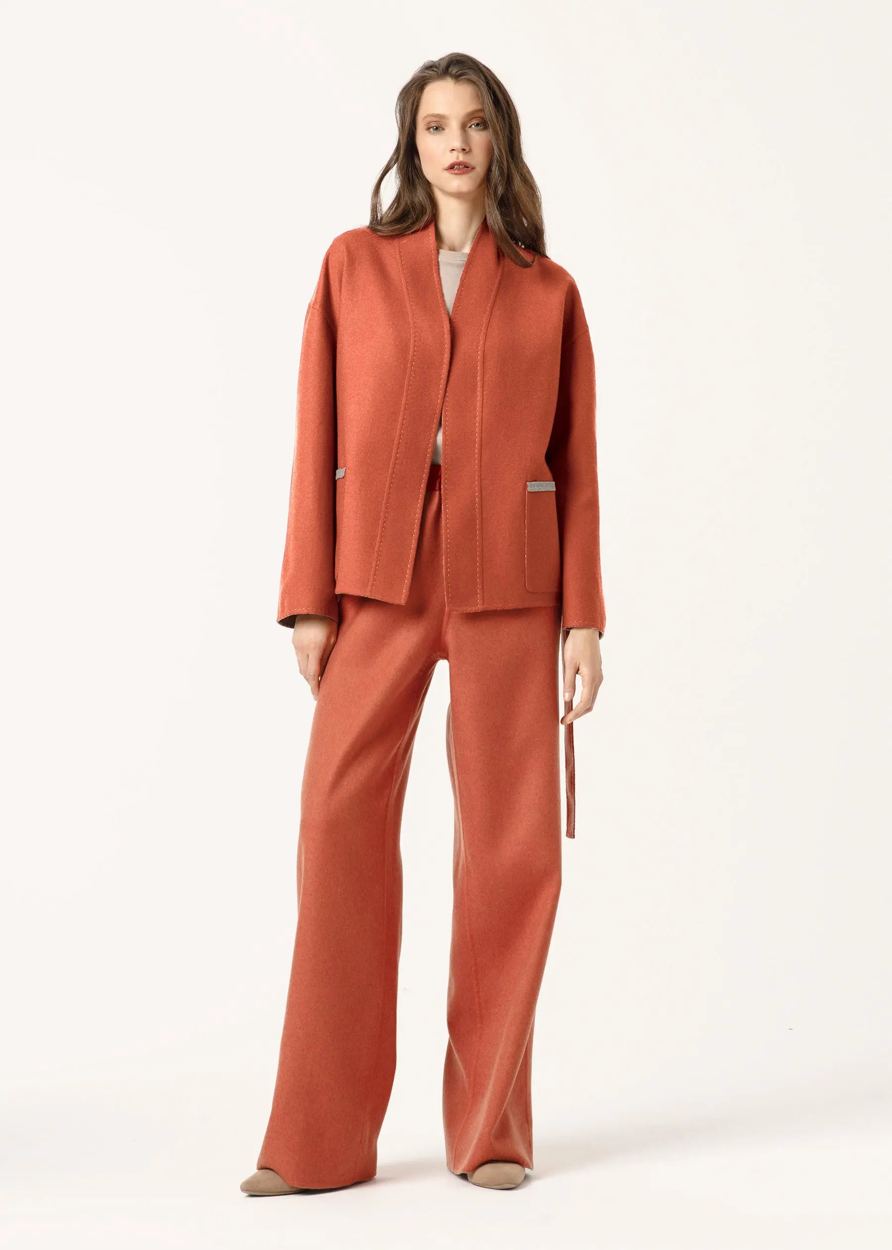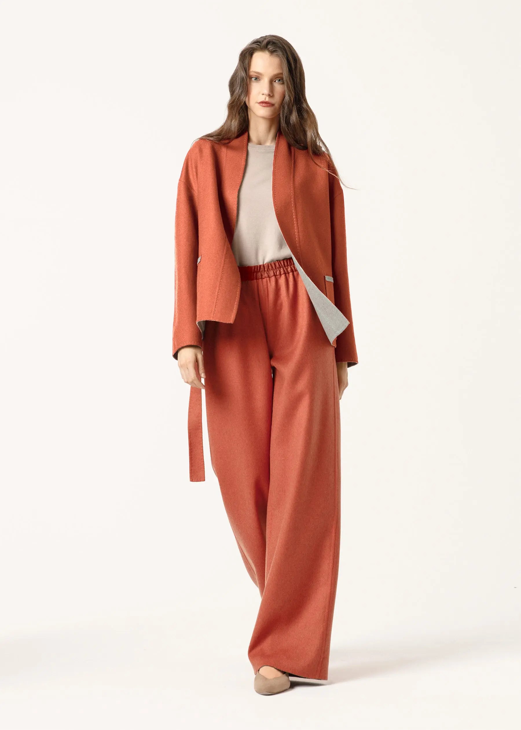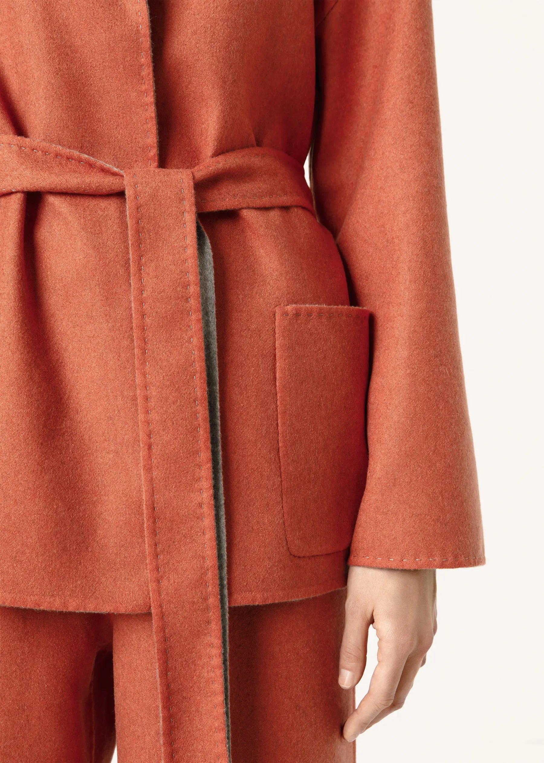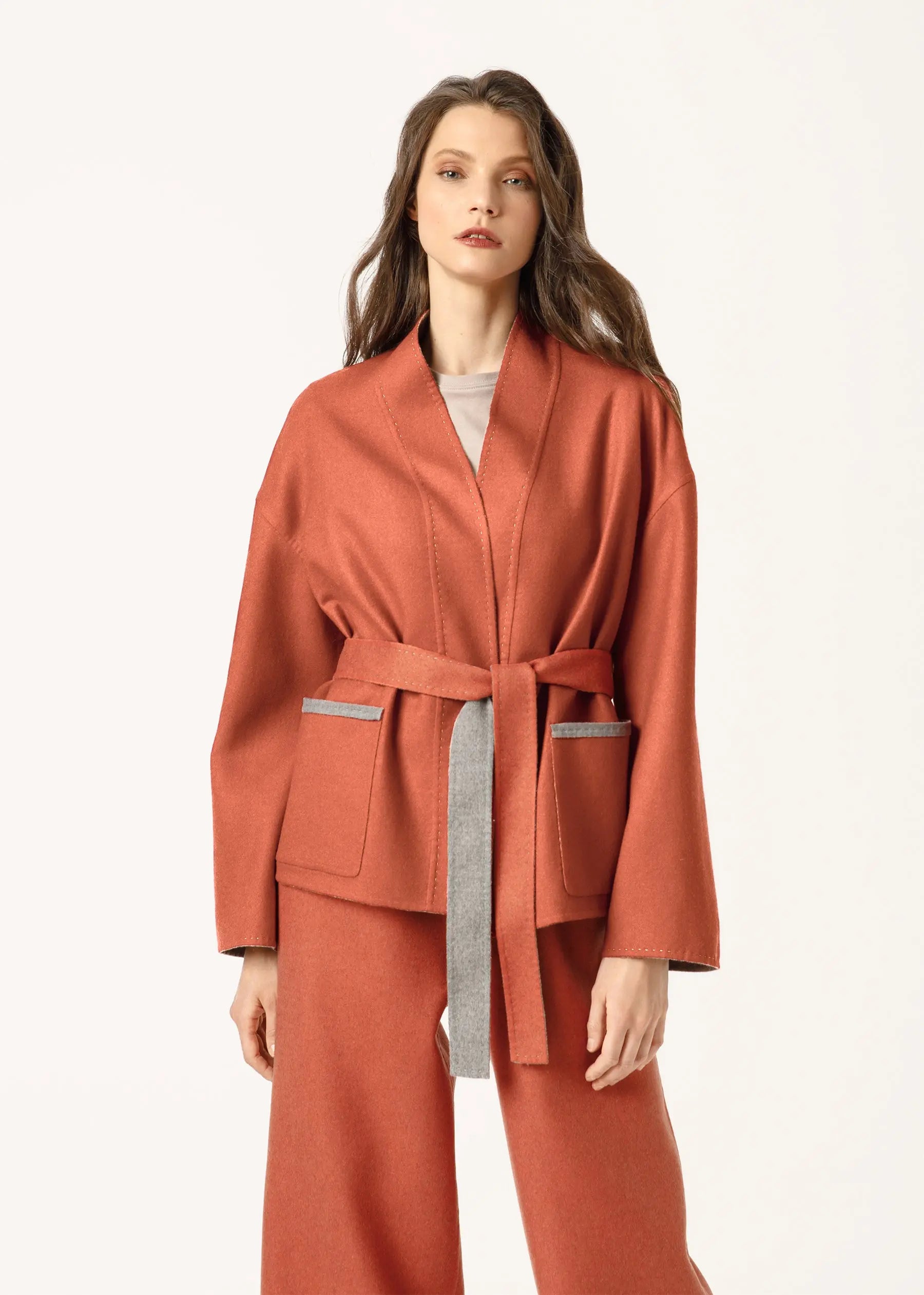 Blazer en Style kimono avec une large ceinture afabriqué en doux cachemire italien, il peut être porté des deux côtés.