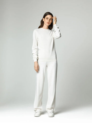 Ein klassischer, gestrickter Jersey aus weichem, seidigem Kaschmir in einem eleganten Farbton Ice White.