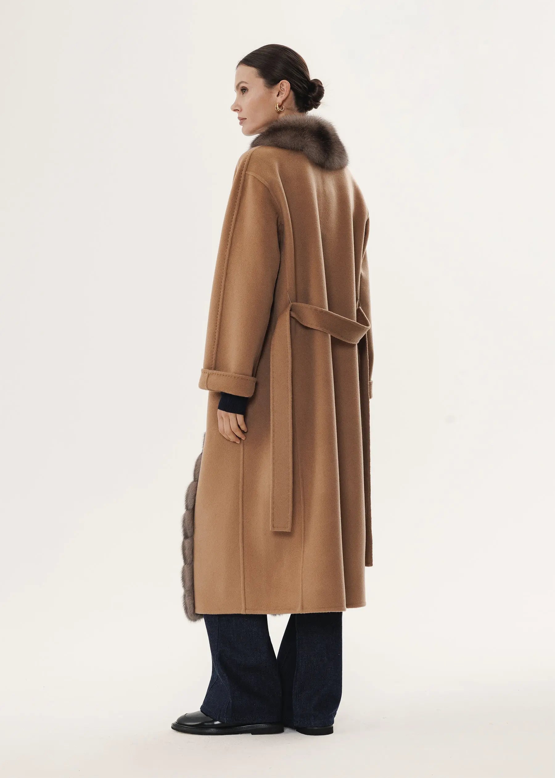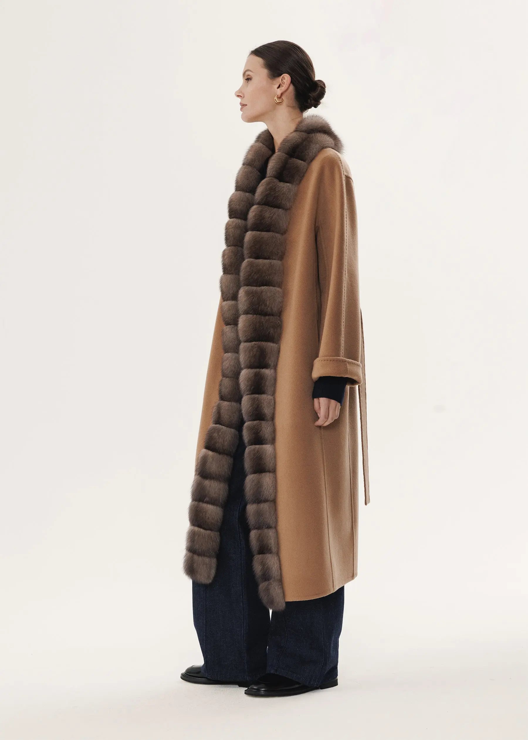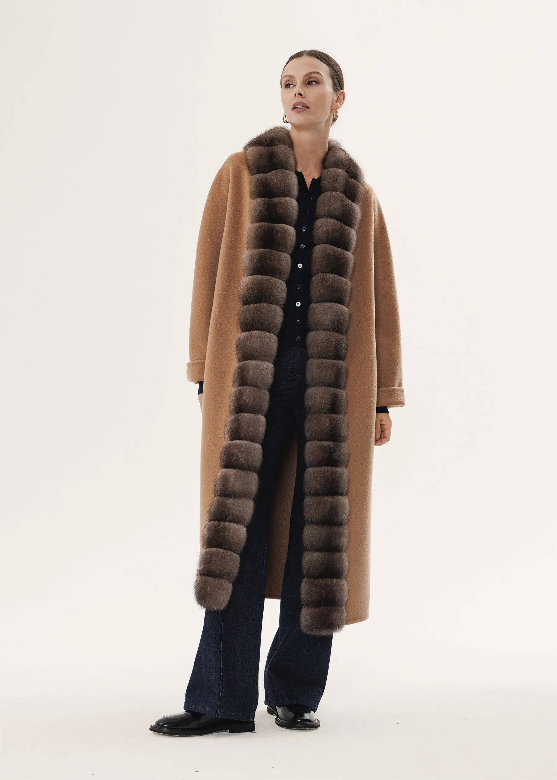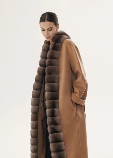 Kaschmirmantel in Kameltonfarbe mit Zobelfellbesatz