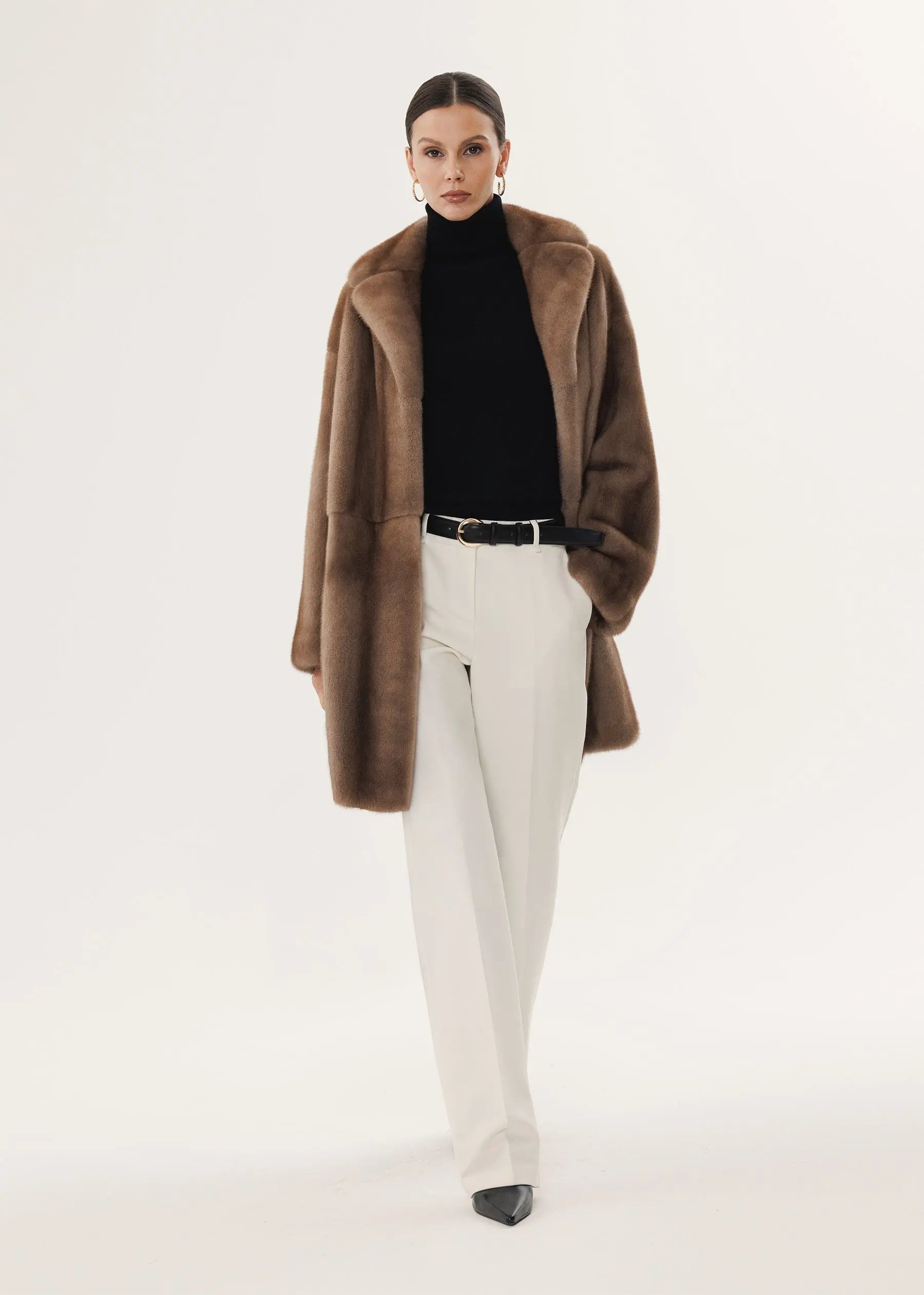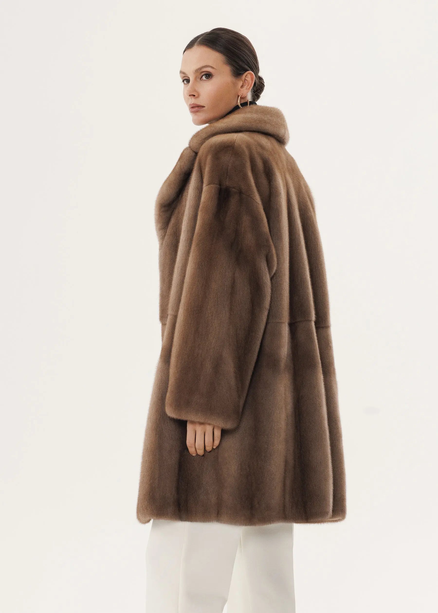 Nerzmantel in Pastelltönen mit englischem Kragen