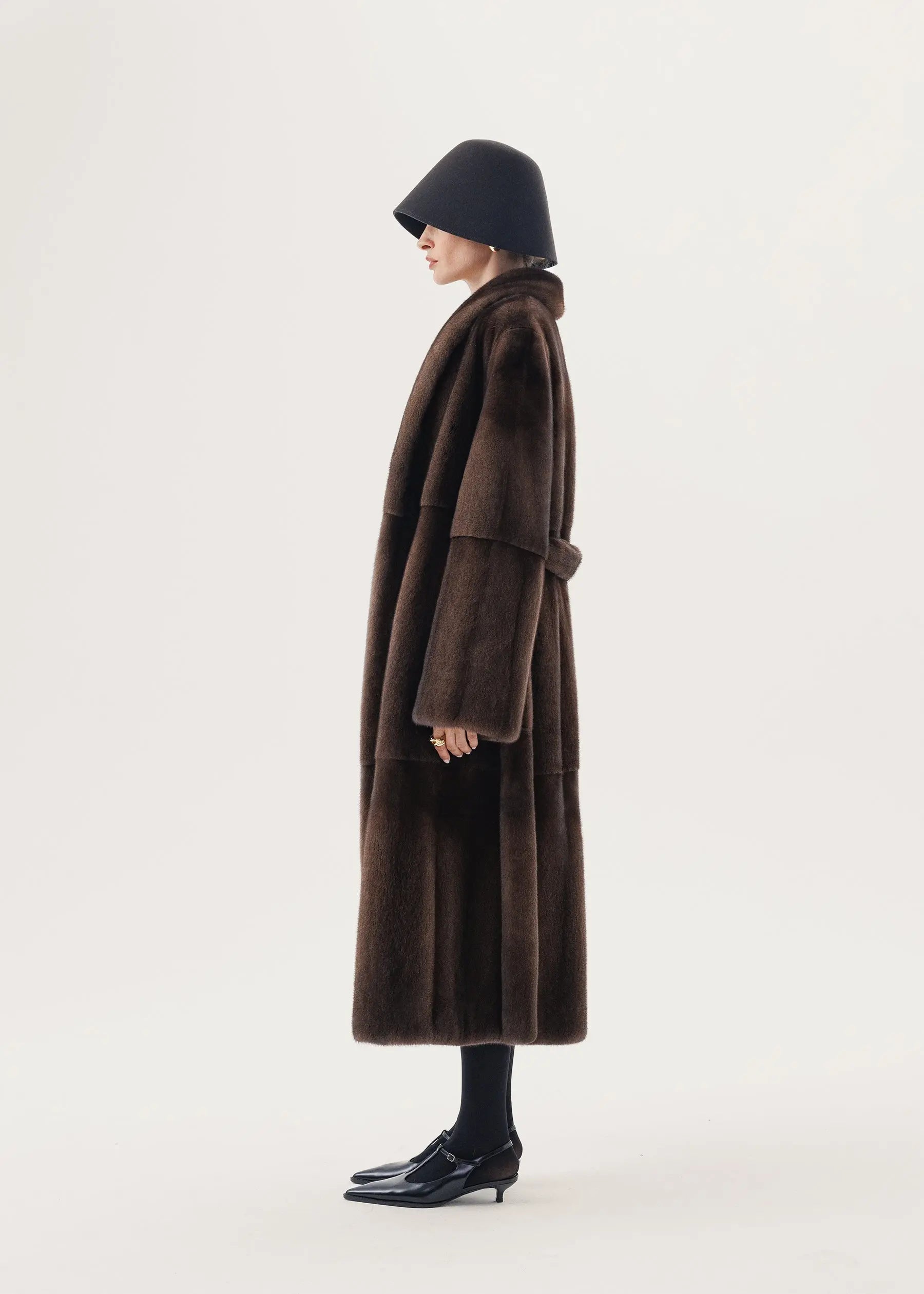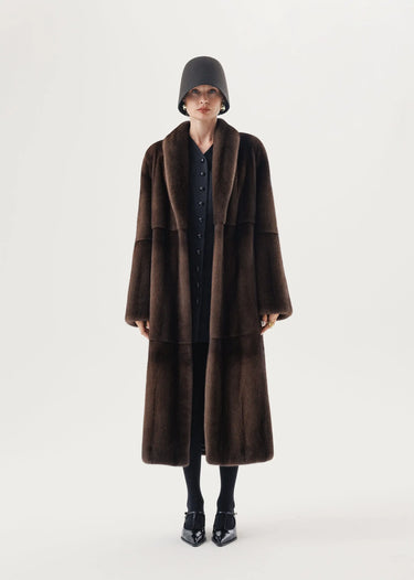 Nerzpelzmantel mit einem Kragen, der in eine Seitenwand übergeht